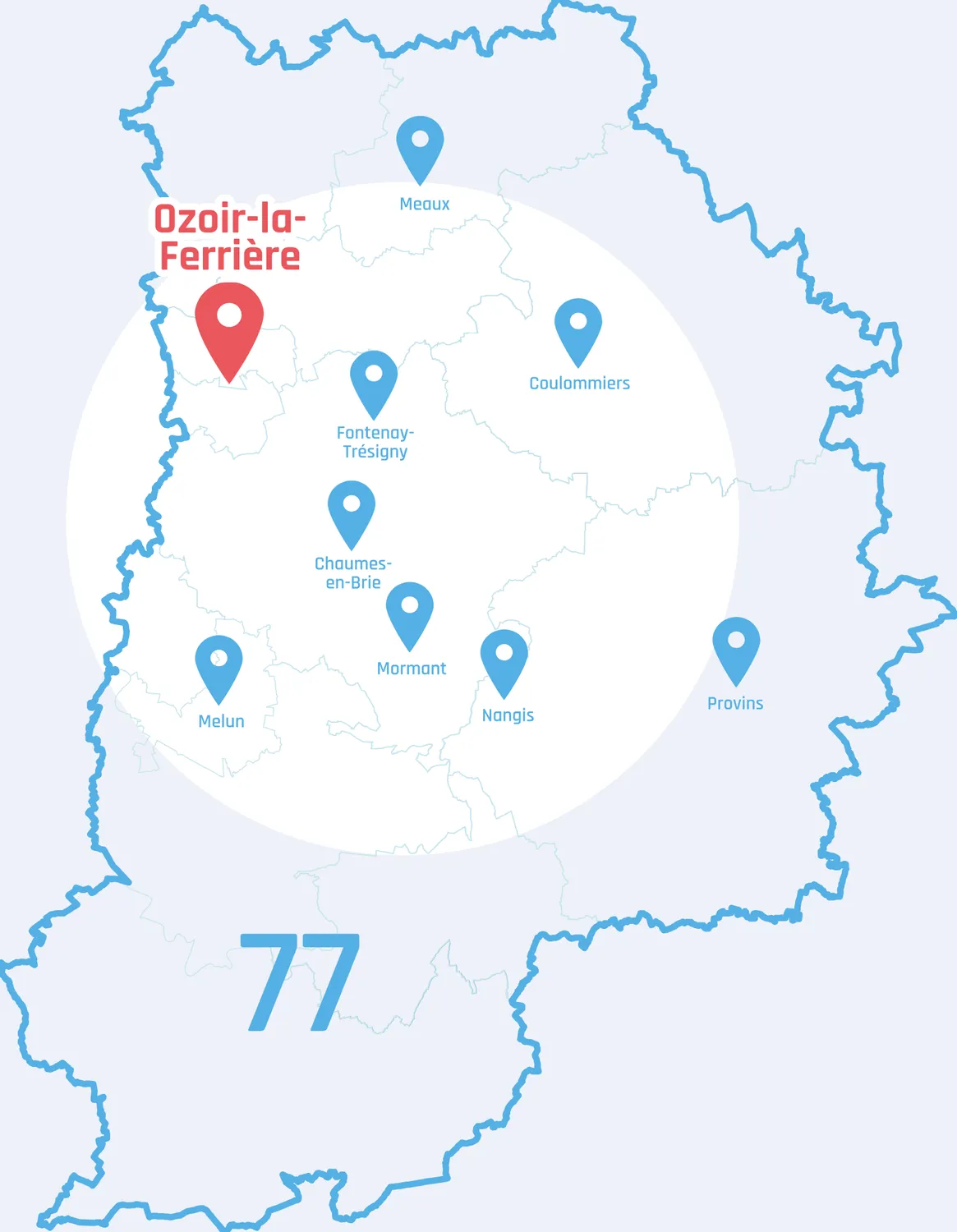 Nous opérons dans un rayon de 30 km, couvrant notamment les villes de Fontenay-Trésigny, Chaumes-en-Brie, Meaux, Mormant, Nangis, Melun, Coulommiers ou encore Provins.